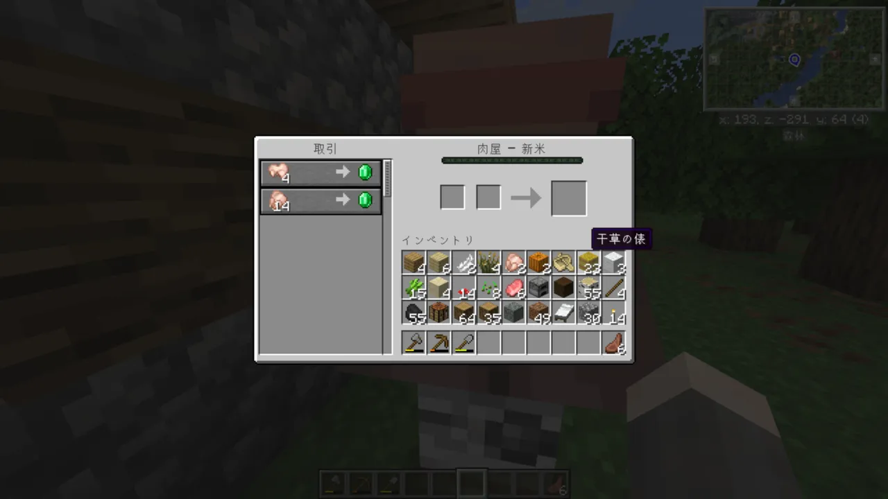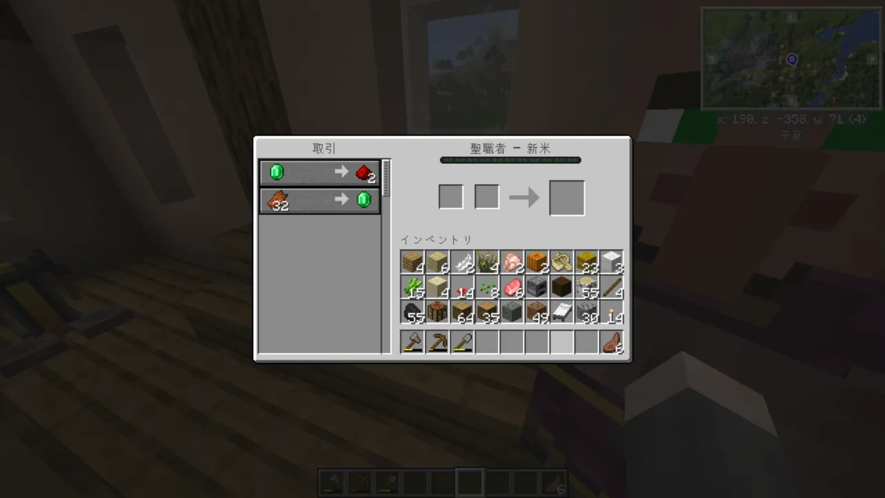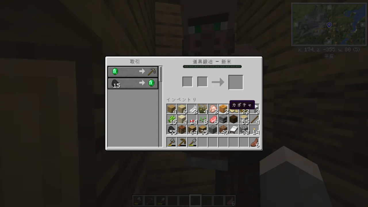 次は畑と倉庫作って村人と取引できるようになりたいです